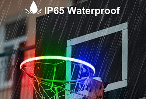WATERPROOF & DURABLE: Made with flexible and sturdy silicone cover, this basketball rim LED light has IP65 waterproof grade and resistant for the hit of basketball, can withstand all kind of weather all round the year. Ensure for long time use.