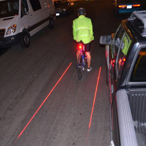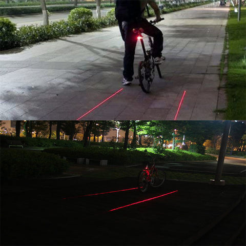 - The design of 5 bright red LED lights and 2 laser beams can maintain a safe area, suitable for night riding or cycling.